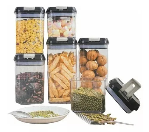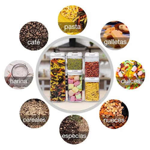 Organización Eficiente: El juego de 7 piezas proporciona una variedad de tamaños, lo que facilita la organización de diferentes tipos de alimentos, desde granos y cereales hasta especias y productos secos.